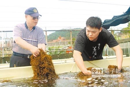 台灣漁民捕撈飛魚卵都會在海面上鋪上一層草蓆誘引飛魚產卵,其實這項技術是向大自然學習得來,陳衍昌笑稱,草蓆可說是山寨版的銅藻。