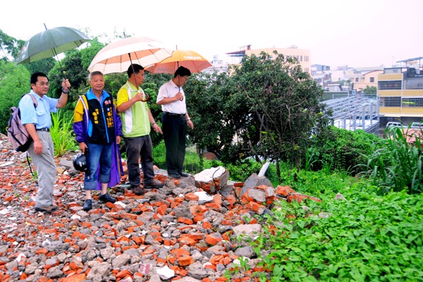 擋土牆和排水如何興設?邱建富和市代會主席楊惟欽、市代林榮堯、林深山、陳慧敏、葉孟家,地主黃炳輝及附近居民同在現場勘查,東區市代和住戶指出,此處山坡地匯流的山洪因無排水溝導引,致流到山坡下民宅,又坡地必須興建擋土牆,防範土石流造成災害。