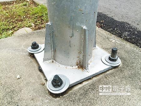 張肇良建議市府,可以改用塑膠套等防護措施將螺絲罩住(見圖,甘嘉雯攝),並於15米以上大馬路優先施作,避免不幸的事件發生,讓民眾行車安心。工務局表示,目前評估中,會將此意見呈報市長後即刻改善。