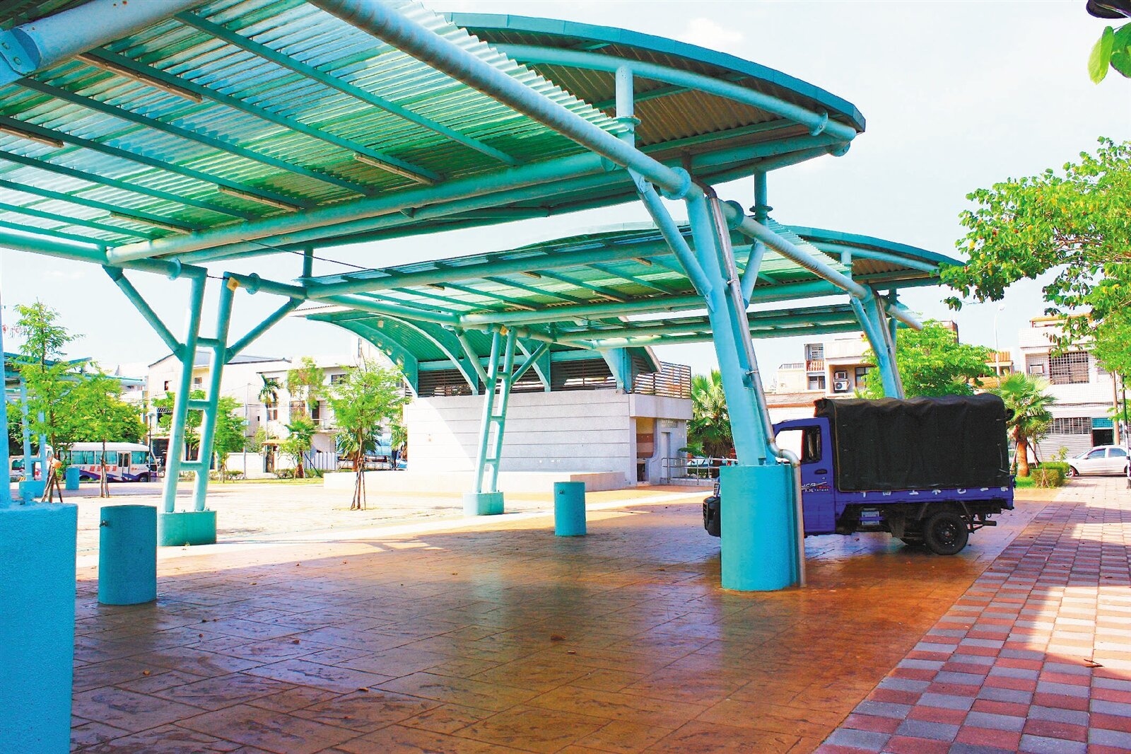 完工後僅辦過一場活動,頭份鎮建國花市遭投訴長期閒置未用,常有車輛停放占用、環境髒亂。 (記者蘇木春/攝影)