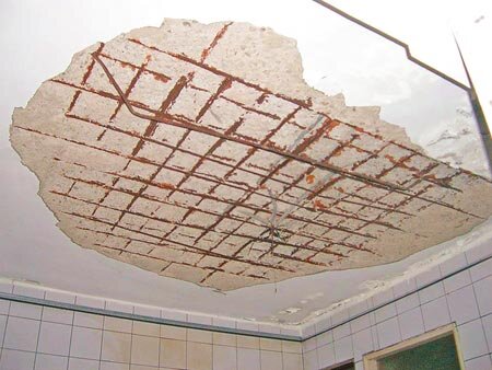 土城宏福新象社區公寓鋼筋裸露,相當嚇人。(葉德正翻攝)