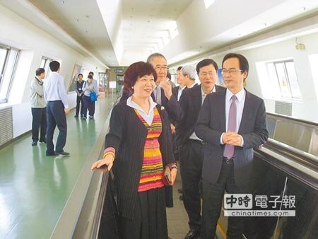 立委李昆澤(前右)邀民航局長沈啟(前左)考察高雄小港機場。(記者張啟芳攝)