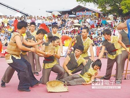 2015全國高中職與大專院校創意宋江陣頭大賽,4日最後晉級決賽8強隊伍壓箱陣式盡出表演,台南大學以宋江融入戲劇、舞蹈,生動武陣躍上舞台,打敗其他陣頭隊伍獲得冠軍百萬獎金,抱回第三代王者之璽。
