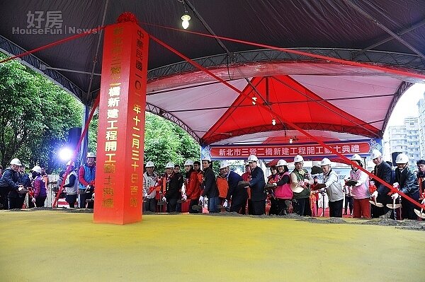 朱立倫、立委盧嘉辰、黃志雄、市議員黃永昌、洪佳君、陳世榮、吳琪銘、王明麗、高敏慧、、彭成龍、林銘仁及歐金獅等出席動土典禮。(圖/記者黃村杉攝)