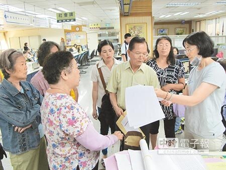 廖富男(中)帶領還未領到補助災民到區公所了解作業進度。(許智鈞攝)