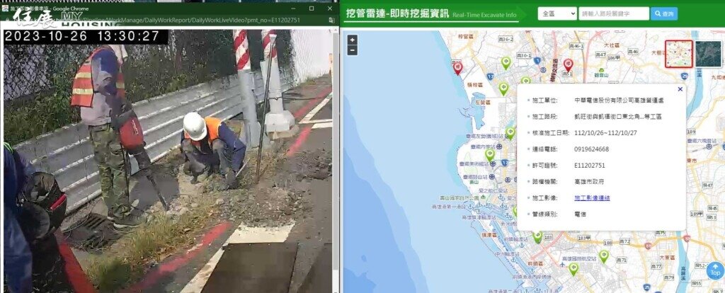高雄市工務局於今(2023)年將既有管挖工程施工影像系統升級為挖管雷達,民眾可直接在挖管中心網頁看著地圖,點選觀看當日管挖工程地點的施工即時動態影像與該管挖工程基本資料,民眾出門前就可了解哪個單位在施工,並避開可能的交通管制路段。
