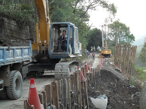 大雪山林道指標八點二公里處正進行災害復建工程,民眾車輛通行需注意安全。(圖/東勢林區管理處提供)