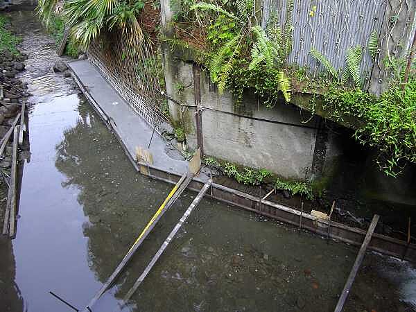 民眾日前反映,北市至善路二段中影文化城後溪流有魚體暴斃,環保局經啟動緊急應變機制後完成水體採樣,並經分析溶氧量8.1 mg/L,屬優良狀態,惟pH 測值8.8偏鹼,經追查上游污染源,發現距離中影公司約300公尺處安宏營造股份有限公司,於當日在該溪流旁施作河岸擋土牆灌漿工程,且現場無有效阻隔措施,致偏鹼性混凝土泥漿流入該溪,造成污染致魚群死亡,環保局依違反水污染防治法告發並處新台幣7萬元罰款,現場已要求廠商立即改善做好防護,未做好防護前不得灌漿施作。