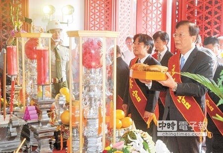 今年是鄭成功開台354周年,來自日本、中國、馬來西亞、全台各地鄭氏宗親會等海內外代表昨齊聚台南延平郡王祠祭祀鄭成功,由內政部長陳威仁擔任主祭官,台南市長賴清德、金門縣長陳福海擔任陪祭官,場面莊嚴肅穆。