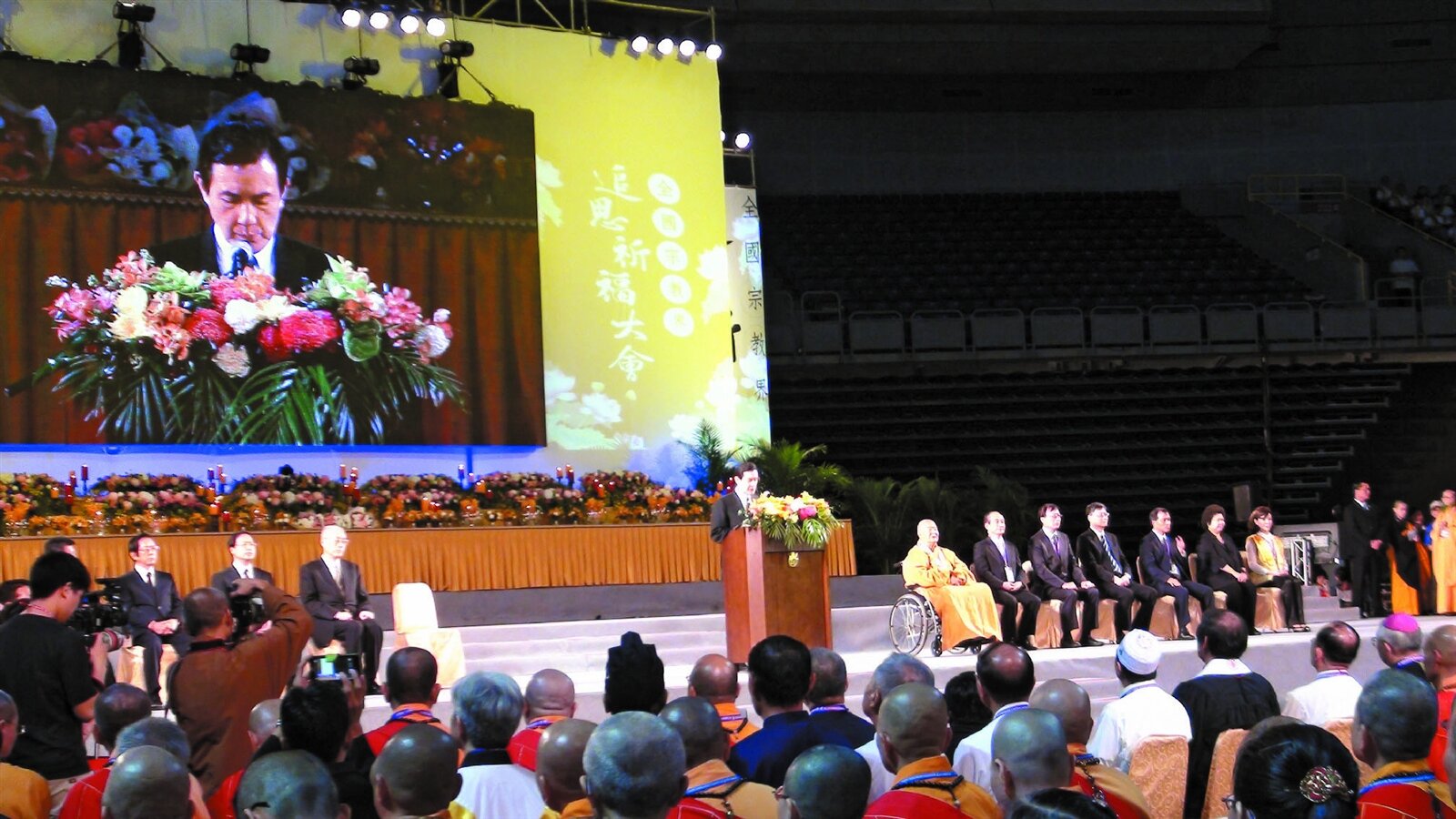 高雄氣爆宗教祈福法會昨天舉行,馬總統率部會首長與宗教領袖共同為台灣祈福。(記者胡宗鳳/攝影)