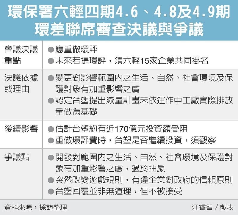 環保署昨天召開六輕四期擴建案環評聯席審查會,環保團體表示雲林、彰化等地區的空氣汙染嚴重,不只危害人體、也殘害作物,絕對不能再擴廠;環評會最後討論結果認為,台塑所提六輕的資料仍不明確,建議環評大會六輕若要擴建,須重做環評。