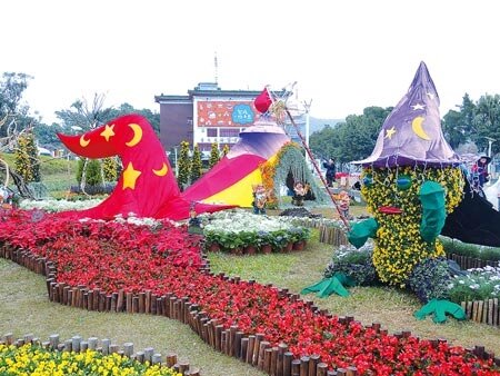 此次花卉展共13個展區,分布在花博公園的圓山與美術館園區。民眾可看到噴火巨龍、大章魚與蝦兵蟹將等海中生物,另有大貓熊搭熱氣球、小火車、可愛動物等花卉造景。雖然14日才正式開展,但現在已有許多路過民眾停下腳步,搶先與已完成的作品合照。