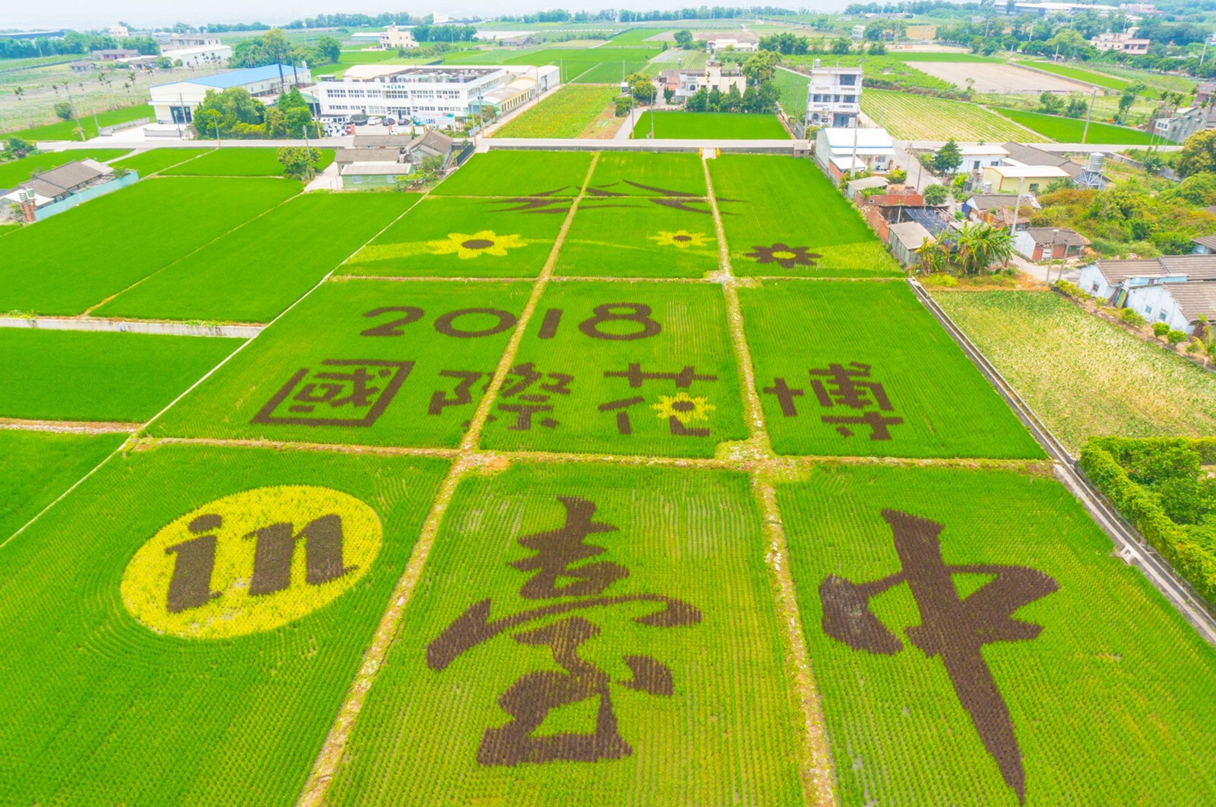 外埔區農會在永豐里觀景台,以黑糯米、稻米彩繪種植,迄今從高處觀看呈現「2018國際花博in臺中」字樣,照片經網友瘋狂轉載,吸引大批遊客前往欣賞。由於配合農民後續稻作,彩繪展期只到6月20日止,欲參觀的民眾,要把握時機。