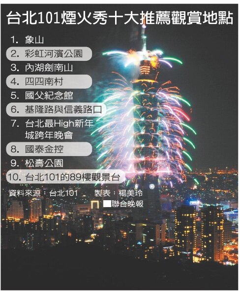 台北101煙火秀十大推薦觀賞地點 資料來源:台北101 製表:楊美玲 (聯合晚報)
