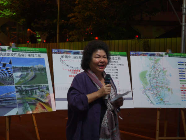 高雄市自從自行車橋翠華橋完成後,成效獲市民及各界好評,市府接著編列1億8千萬元經費,進行前鎮中山四路跨越凱旋四路的自行車景觀橋工程,設置高雄市第二座自行車橋兼供行人通行,25日晚上進行跨越鐵道南側的新凱旋四路平面道路鋼箱樑吊裝,市長陳菊特別前往關心工程施作,完工後將成為前鎮區的入口意象和通往高雄國際機場的地標。