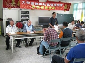蘇力颱風造成大甲六股大排堤防淘空,官員昨日與民眾開會協商改善辦法,居民要求排灌水分開,始有望徹底改善。(記者陳榮昌攝)