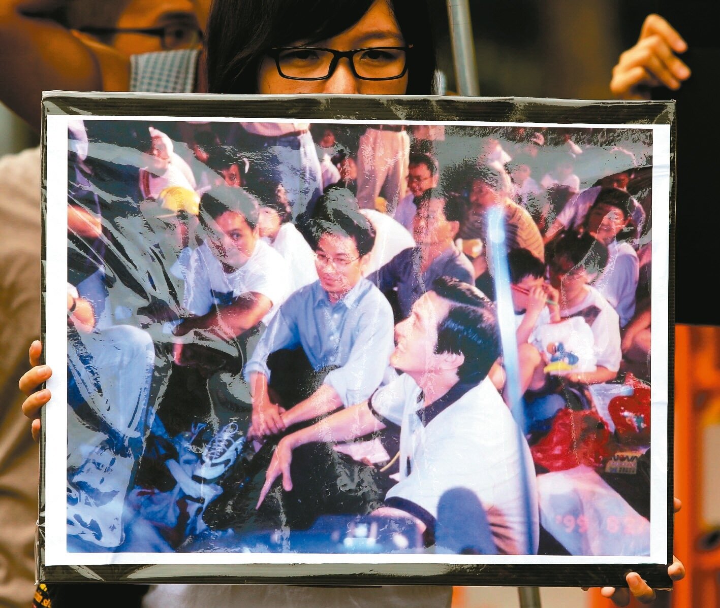 「巢運」拿出相片指出15年前身為台北市長的馬英九,和參與無殼蝸牛10周年夜宿忠孝東路的民眾並肩。