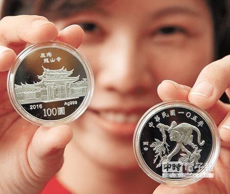 央行表示,月底開賣的猴年套幣,維持12萬套的發行量,每套1600元。套幣內含1英兩的猴年銀幣,正面圖案為「靈猴摘桃」,背面圖案為國家古蹟彰化鹿港龍山寺,申猴年有「升候」(升官)之意。