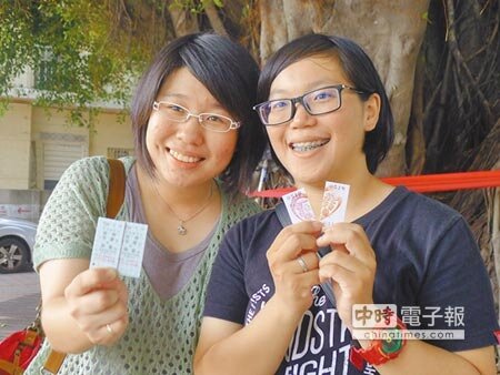 台鐵永康車站推出紀念車票,昨早開賣,許多民眾清晨就到場排隊,如願買到車票開心不已。(截取自中時電子報)