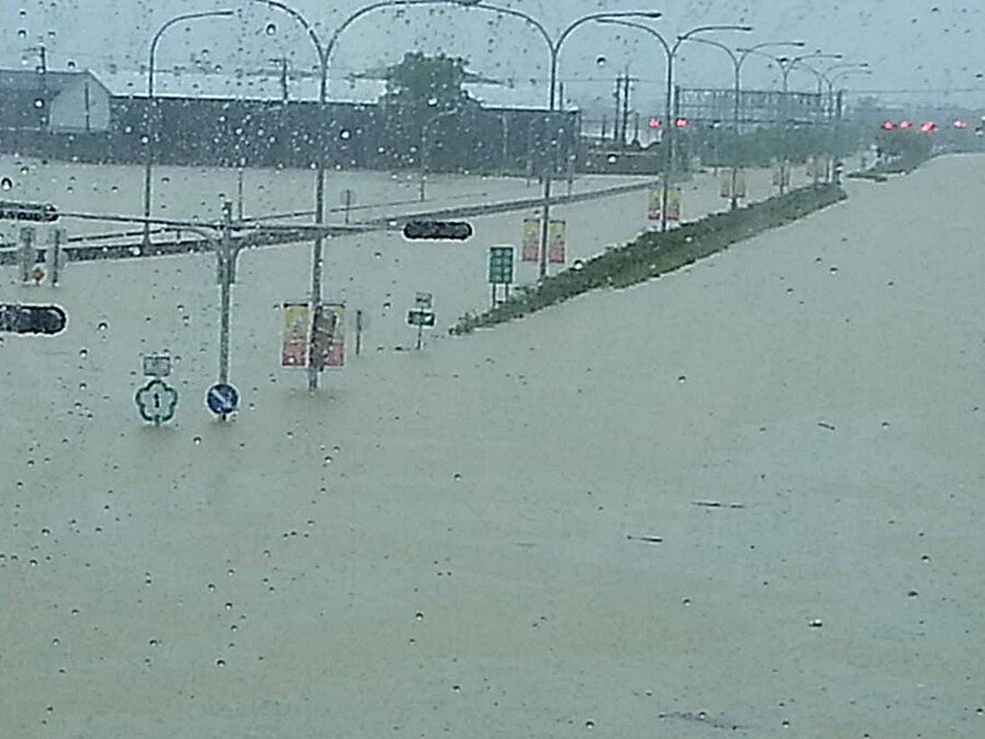 康芮颱風來襲,中山高嘉義大林到斗南路段溪水爆漲淹過國道路面,南北雙向封閉。(圖/網友麥克臉書分享)