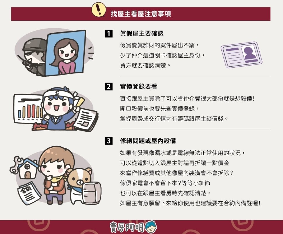 直接跟屋主買好處,除了可以省仲介費,很大一部份原因就是想殺價看看!開口殺價前,同樣也要先查實價登錄,掌握周邊行情才有籌碼跟屋主談價錢。
