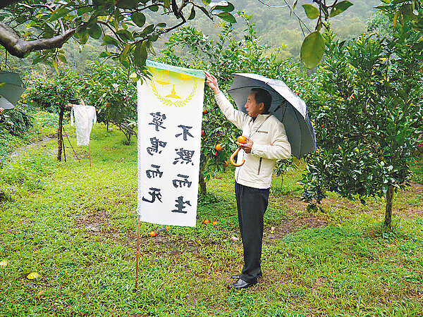另外,他曾和獵人設好陷阱等待山豬,隔天山豬卻沒來,果園完好如初,他仔細回想,當天他正好撒了肥料,氣味很重,應該就是這樣,山豬不敢進到果園,於是他找了一種氣味較重的農藥叫「福壽松」,放一點在農藥瓶,掛在樹上,山豬就不敢靠近。