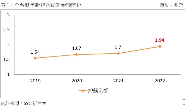 2022年黑天鵝當道,下半年買氣由熱轉冷,不過建商並未就此縮手,今年總銷爆出史無前例的1.94兆元,直逼2兆元巨量。