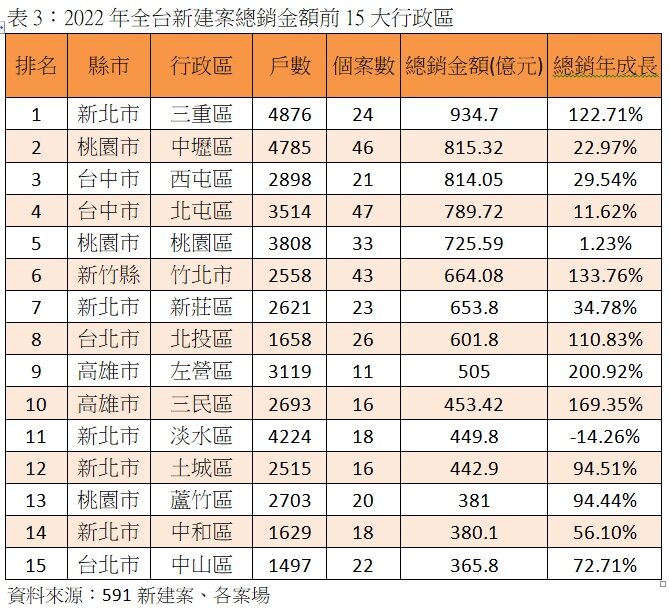 591新建案分析,今年房市多空拉鋸,市場風向難測,加上此前央行祭出限貸、限期開工等措施,不少已砸下大筆銀彈獵地的建商只能帶著鋼盔向前衝,正好又遇上疫情導致營建成本及房價飛漲,才會形成今年「買氣越冷,推案越熱」的特殊現象。