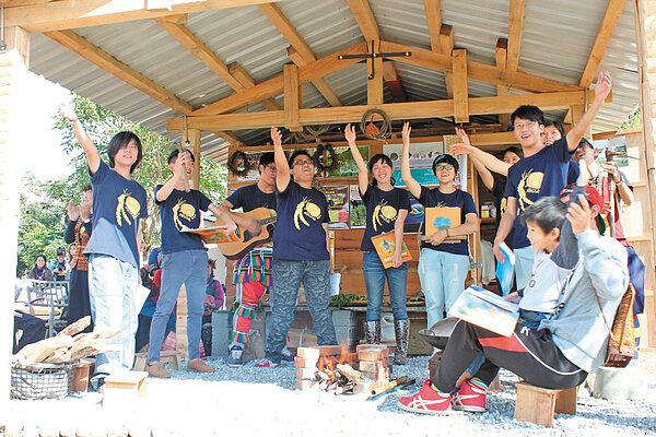 東華大學原住民學院外的小米田在學生細心照顧下,去年第一次收成。為擺放農具,學生以88風災的漂流木蓋了「小米集力所」做為資材室,昨天高歌歡喜「入厝」,感謝高齡80歲的邱琳福阿公教大家蓋房子,「忍受我們的頑皮」。