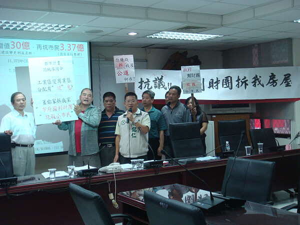 新北市議員林銘仁接受民眾陳情,召開質疑市府圖利財團記者會。(記者黃村杉攝)