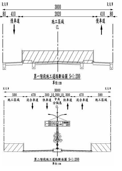 第一階段施工預定自2月25日起至6月25日止,封閉中央雙向快車道,預留左右外側慢車道供鄰近住家通行,道路號誌依原有號誌運作;慢車道全線標繪紅色禁止臨時停車線。
