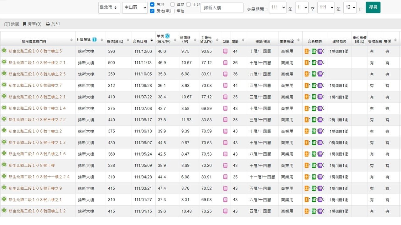 但儘管如此,還是有許多民眾不計較其「凶宅」身份,每年交易件數都穩定維持在10幾筆,而光是去年整年度,就多達17筆的買賣移轉交易紀錄,該社區去年單價最高落在47.4萬/坪,最低則落在35.5萬/坪不等,總價都落在500萬元(含)以下。