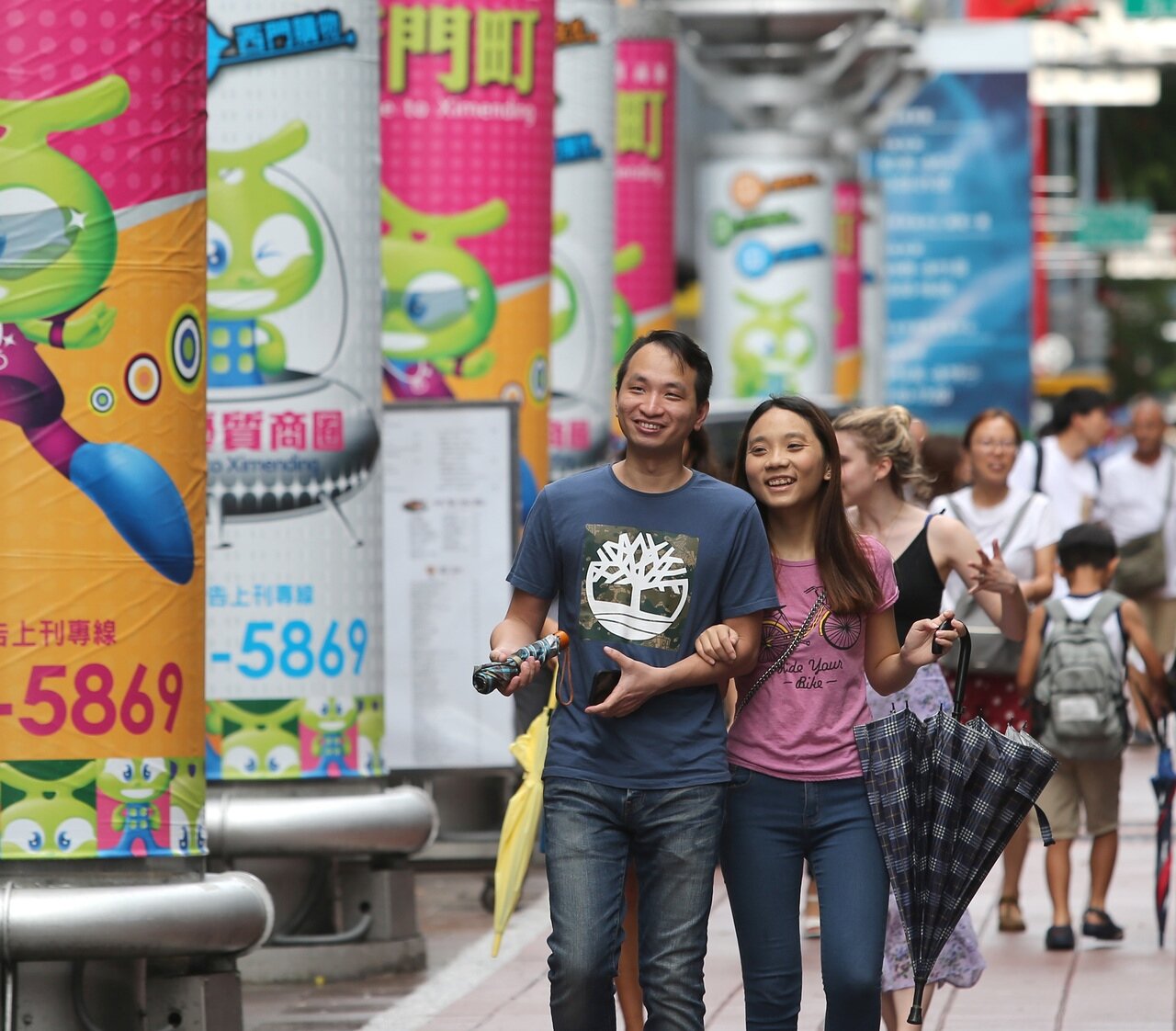 利奇馬颱風北偏,北北基昨天風雨沒有預期中大。民眾賺到颱風假,開心走在街上。記者林澔一/攝影