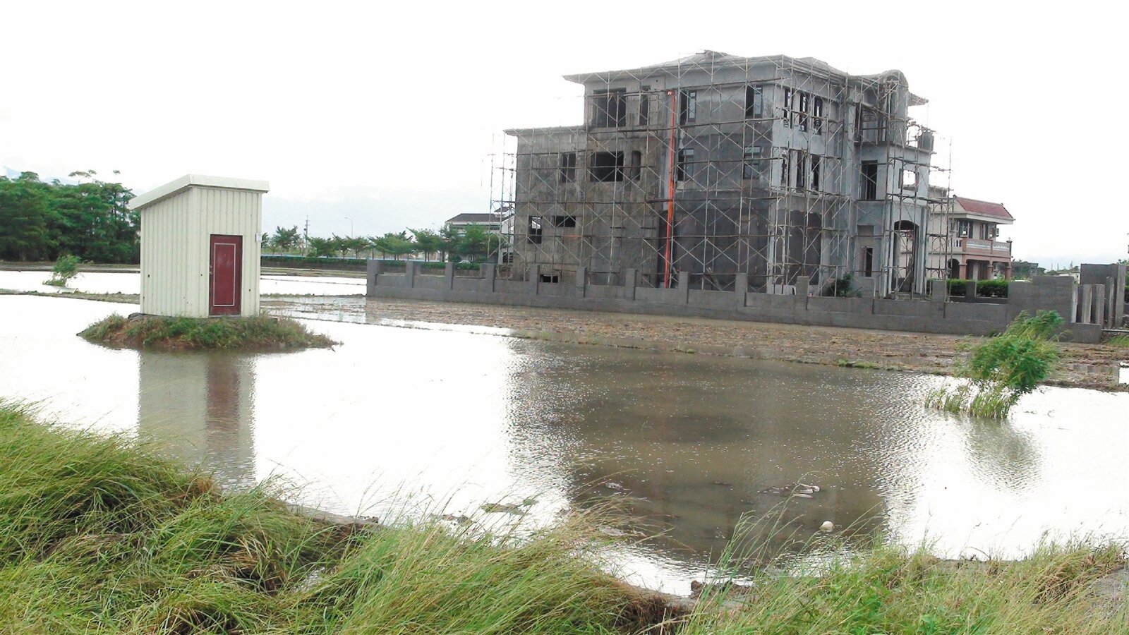農舍一棟棟蓋起來,水田蓄水功能盡失。宜蘭縣政府要訂地方法,要求新建農舍自備淨化池貯水。(記者吳淑君/攝影)