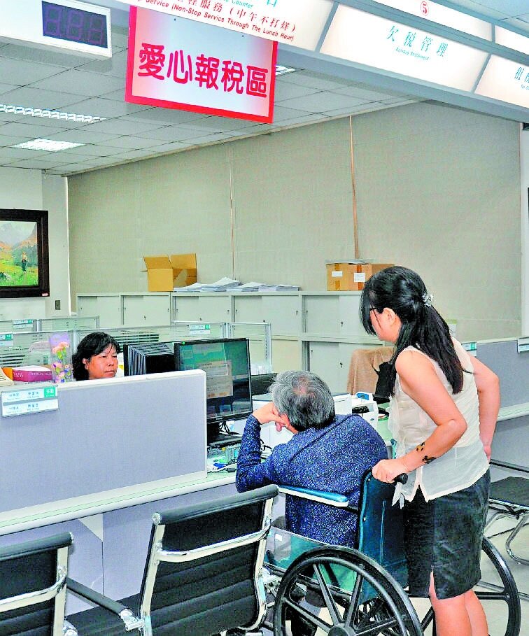 南區國稅局佳里稽徵所為方便弱勢民眾報稅,在1樓增設「愛心報稅櫃台」,行動不便民眾可不必再上5樓申報。