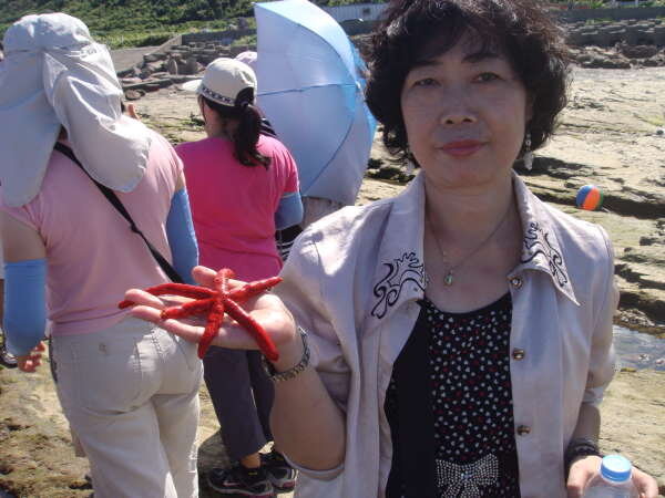 農業局與貢寮區漁會辦理的「貢寮漁村漫遊」活動,在潮間帶上隨時可見陽隧足、海星、海蛞蝓、海膽、海葵等生物。(記者黃村杉攝)