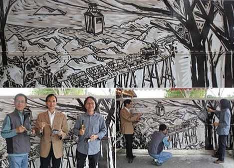 該藝術學會更鼎力配合為森美館旁的鐵門設計及彩繪,做為祝賀與熱身的賀禮。彩繪由該學會總幹事邱憲章設計,以太平山伐木時期作業為意象,再由處長林鴻忠、學會理事長沈東榮、前任理事長陳建宇、理事林民和等人,共同以版畫手法,描畫出太平山的毛地黃、運材火車、高架鐵道、參天檜木、高空流籠,還有雪山山脈、蘭陽溪、蘭陽平原、龜山島和太平洋等山海景物。