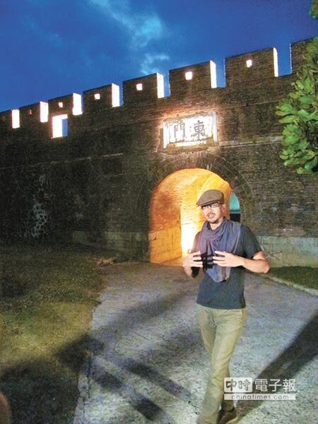設計「東門」的藝術家江佶洋,親自在城門口為大家解釋設計理念。(許智鈞攝)