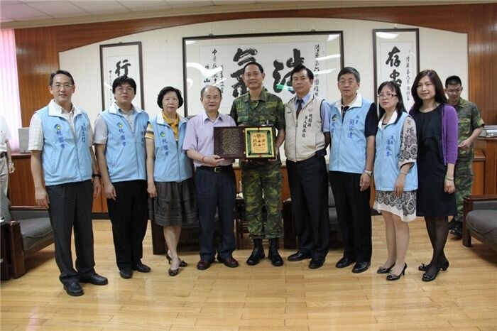上個月造成桃園市各地傳出淹水災情的611豪大雨,其中又以大樹林地區最為慘重,東門溪畔社區大樓地下室淹水,早期大樓電器設備置於大樓地下室,淹水後,附近居民因此而停電,國軍官兵出動大批人力、物力,投入協助救災工作,對此,桃園市長蘇家明以感恩的心情4日上午在市代會主席游財登、桃園縣軍人服務站站長周軍橋陪同下,率團前往軍方致贈慰問金、感謝狀,以肯定國軍官兵苦民所苦的精神,充分發揮「人飢己飢、人溺己溺」的愛民情操,協助災民重整家園。