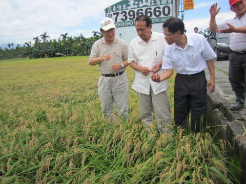 隨即轉往高樹視察稻田「穗上發芽」的情形,高樹大埔合作社經理鍾秋香代表農民發言,她說,目前高樹約有50公頃稻田尚未收割,由於連日豪雨,濕氣重,再加上田地泥濘,已成熟的稻田無法順利收割,有些還有稻熱病徵狀,所以產生「穗上發芽」的情形,希望政府單位協助收購災害穀及協調收割機進場。