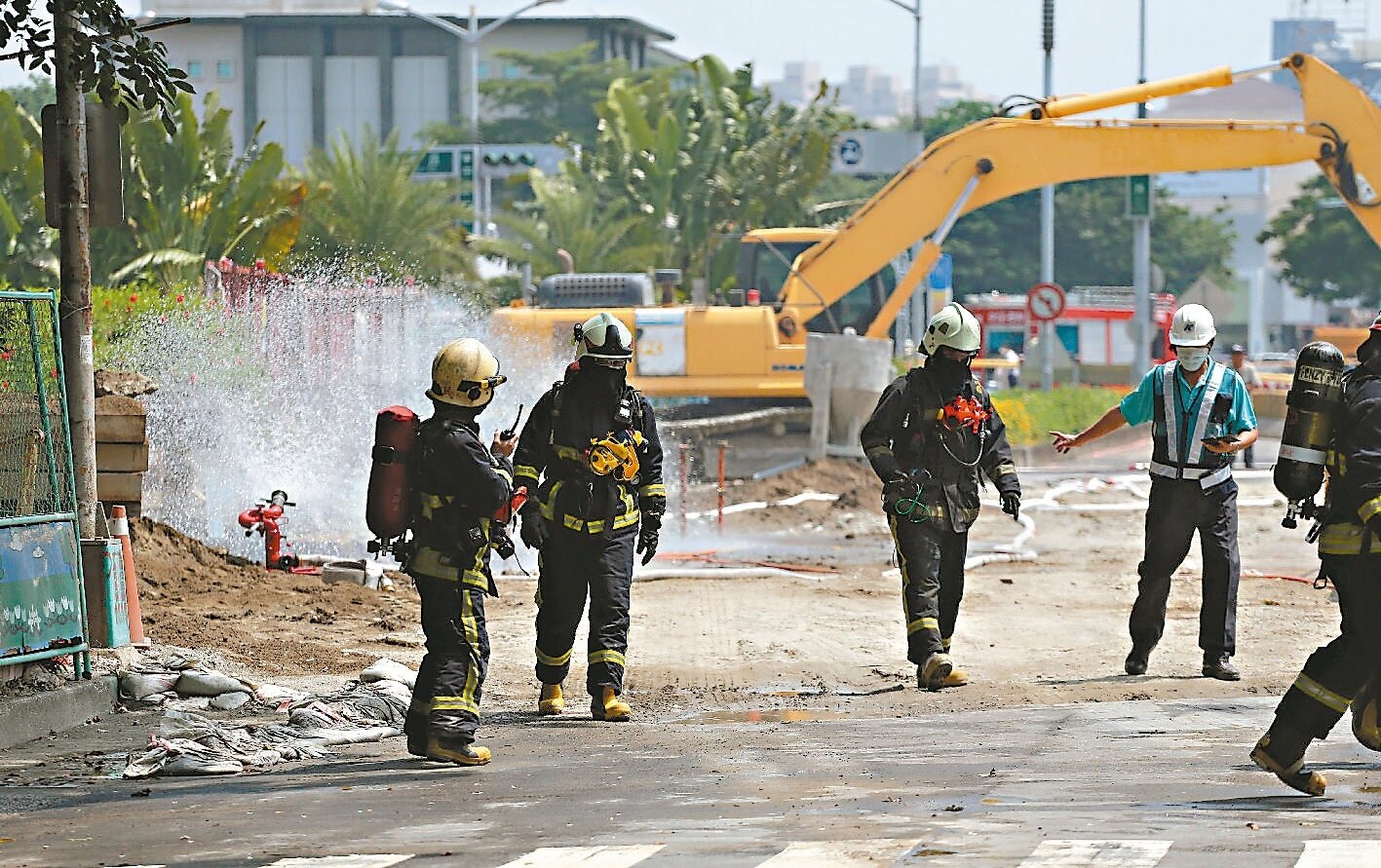 現場工人表示,昨天上午八時許施工時聞到濃濃怪味,十時十三分挖土機司機吳榮豐正在下方挖掘土石,沒多久聽到轟然巨響。