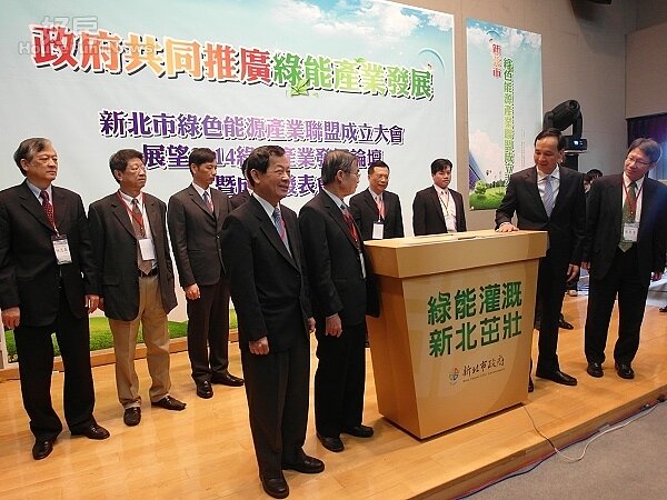 新北市綠色能源產業聯盟5日在市府舉行成立大會,市長朱立倫在經濟部能源局長歐嘉瑞的見證下,親自授證予新北市綠色能源產業聯盟理事長陳輝俊,象徵大會正式成立,聯盟宗旨是配合市府產業政策,打造優質的綠色產業環境,並積極促進企業與市場連結。會後並舉辦綠能論壇暨成果發表會,邀集專家學者及業界代表進行產業趨勢及願景分享。