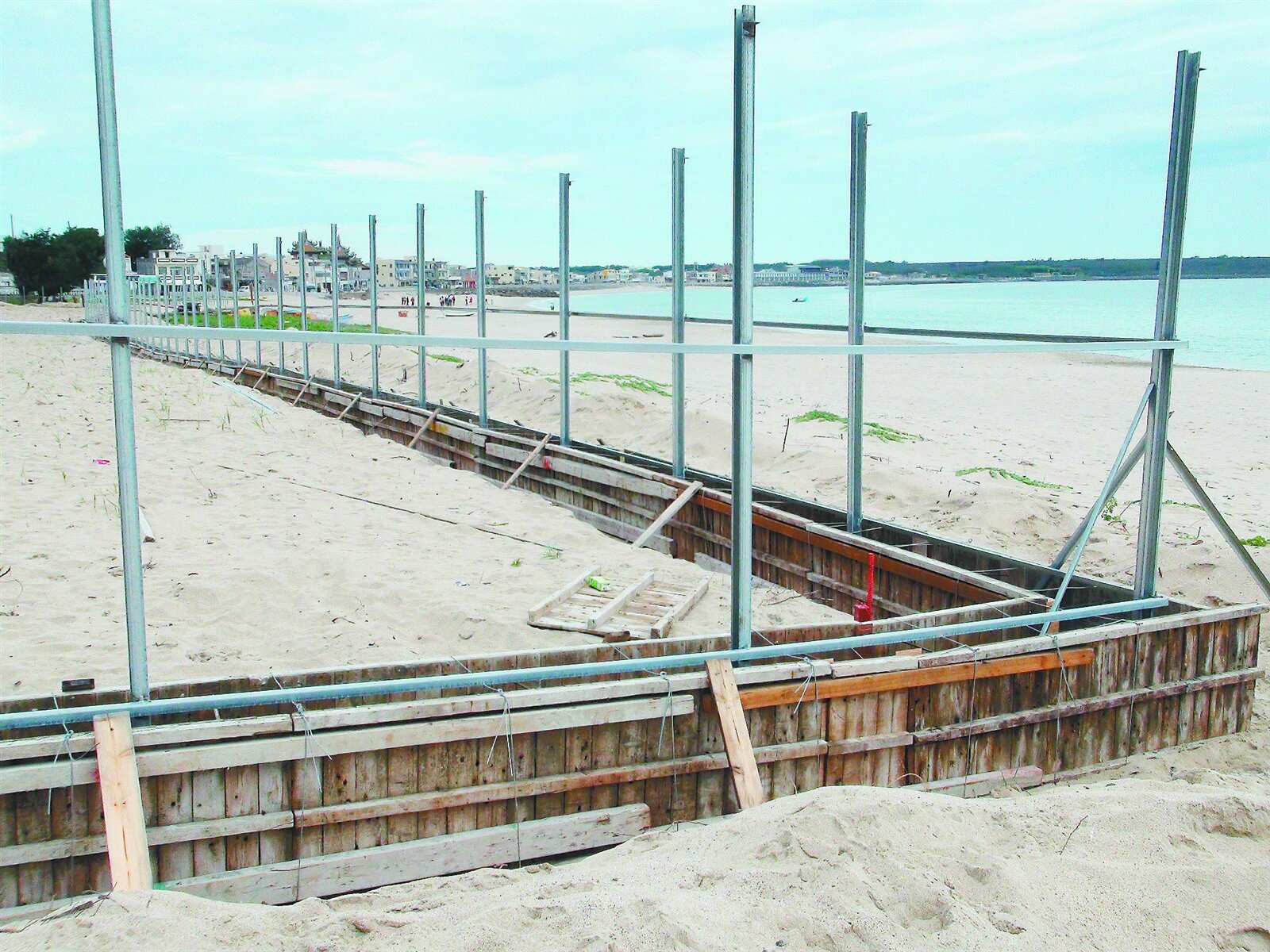 業者在沙灘上架起圍籬,將沙灘開膛剖肚,令人惋惜。(記者許玉娟/攝影)
