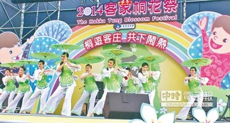 2014台灣客家桐花嘉年華全國首場活動,會中邀請客家藝文團體演出青春、活力的客家舞蹈。(記者楊樹煌攝)