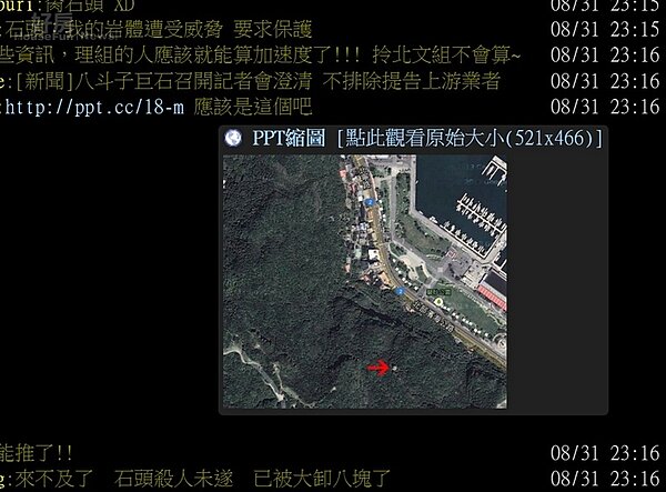 八斗子巨石滑落砸車,引發網友關注。(翻攝自PPT)