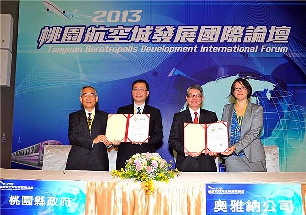 30日的「桃園航空城發展國際論壇」中,吳縣長代表桃園縣政府與英商奧雅納集團副總裁陳嘉正進行「桃園航空城發展策略總顧問」簽約儀式,儀式由英國貿易文化辦事處副代表馮梅瑞和財團法人中興工程顧問社董事長蔡勳雄擔任見證人。今天的論壇,共分成「國際航空城市發展趨勢」、「航空城產業發展及招商策略」及「大眾運輸導向發展(TOD)典範城市」等議題,進行四場經驗交流與討論。