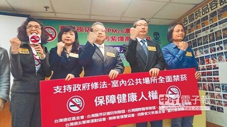 夜店和酒店時常煙霧迷漫,根據董氏基金會最新調查顯示,未禁菸的酒吧和夜店,室內PM2.5濃度竟高達800微克,達環保署認定「紫爆」標準的12倍。專家表示,這種空氣品質根本像在吸「汽機車排氣管」的廢氣,強烈呼籲雇主創造無菸的工作環境。