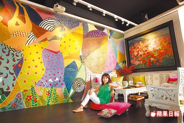 從一開始跳國標舞,到後來學印度舞、肚皮舞、佛朗明哥舞,跳舞對秀華來說是再自然不過的事。因此裝修房子時,她最想要有個專屬的舞蹈室。秀華特別向學畫的老師邀畫妝點空間,得到一幅女人翩然起舞婀娜多姿、色彩亮麗的大型畫作,彷彿有它伴舞,跳得更起勁。