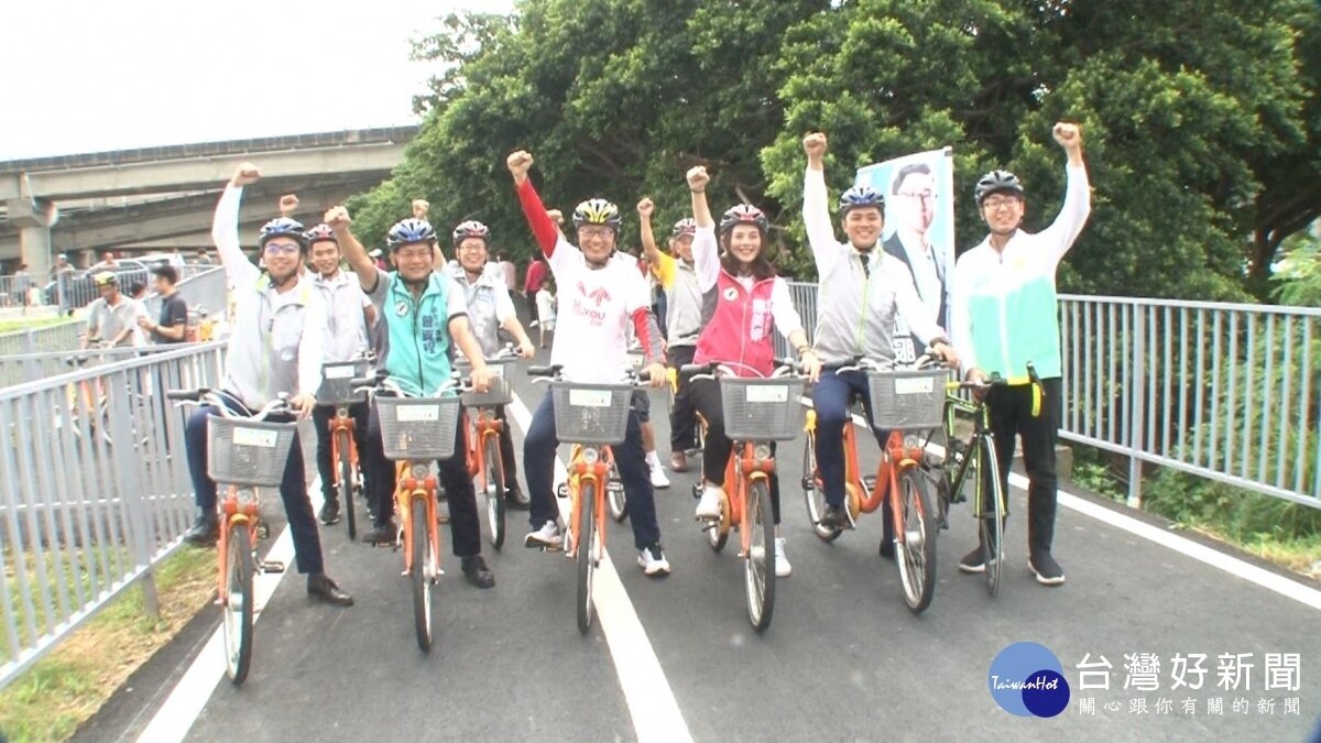 新竹市交通處長倪茂榮和民意代表們,以騎乘單車的方式,象徵頭前溪左岸四個出入口改善啟用。