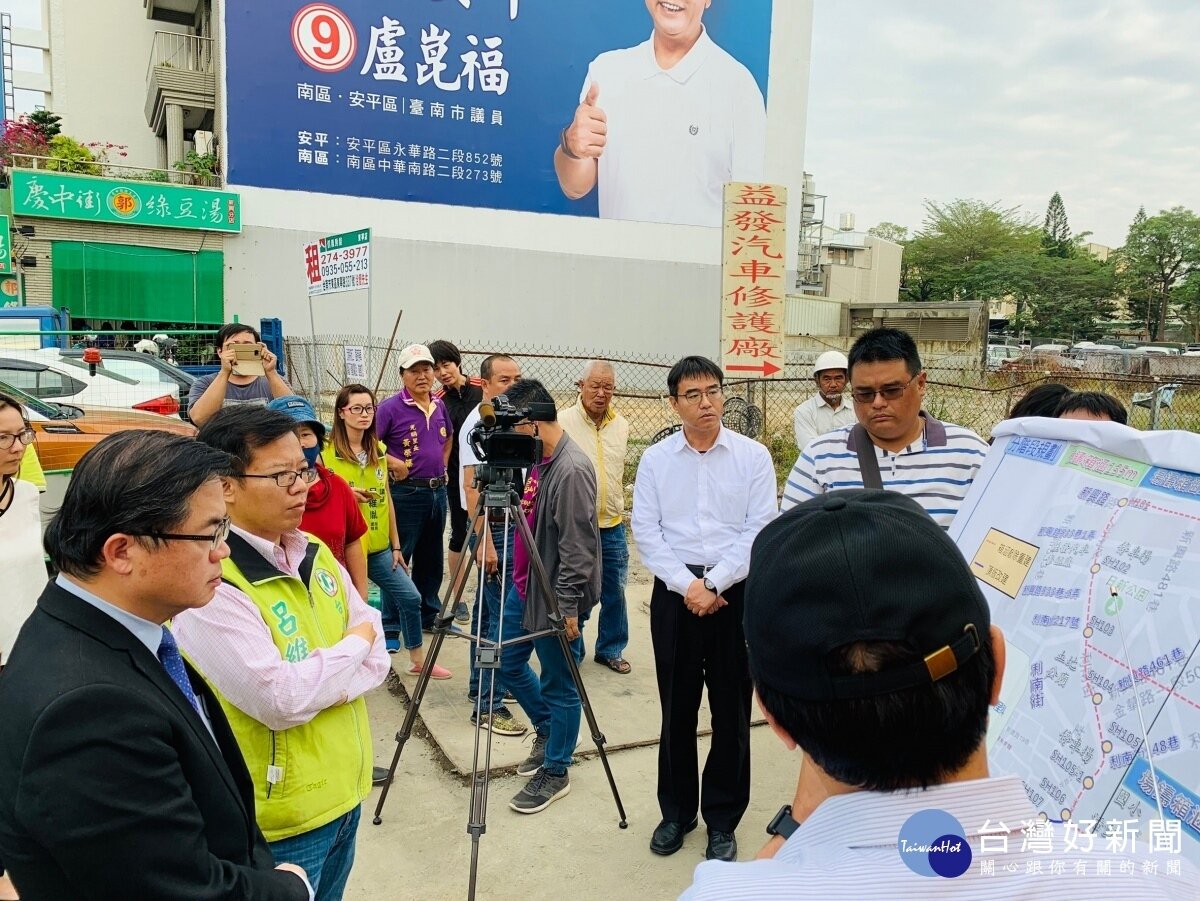台南市南區利南街箱涵更新工程延宕許久,市議員呂維胤30日邀集代理市長李孟諺、水利局長彭紹博及地方里長、攤販民眾會勘,要求市府相關單位。圖/台灣好新聞